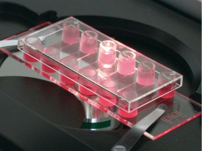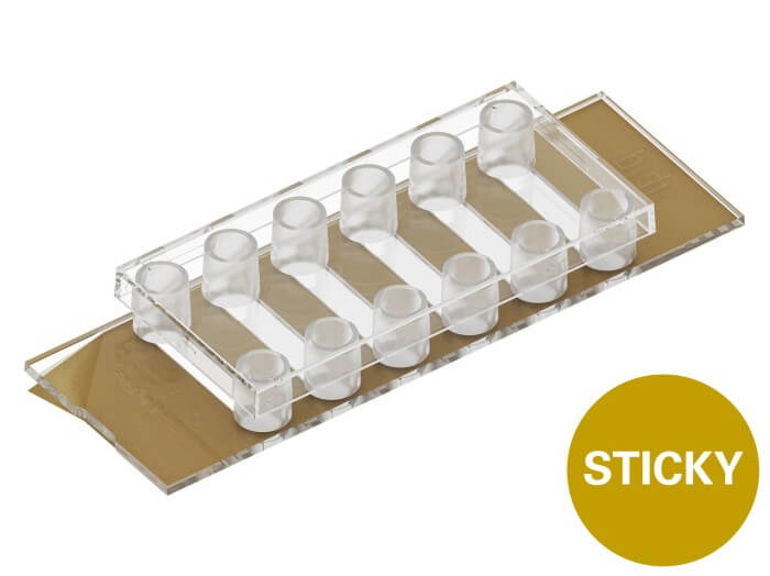 用于平行流體實驗和免疫熒光的六通道載玻片,僅使用少量的試劑和培養液即可完成實驗。